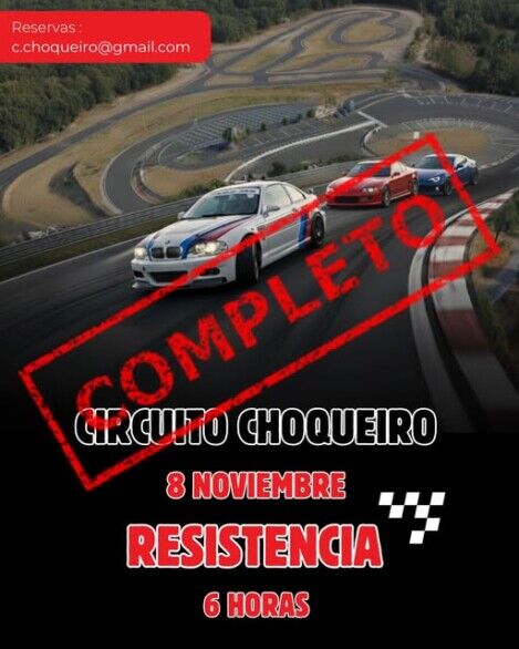 Inscripciones abiertas y más detalles por correo electrónico (c.choqueiro@gmail.com). 📧 ¡No te quedes fuera! ¡Los primeros inscritos podrán disfrutar de boxes cubiertos!