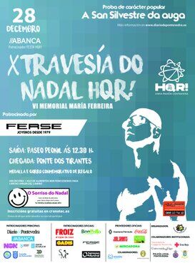 La undécima edición de la travesía a nado de Nadal HQR! en el río Lérez se celebra el 28 de diciembre y será el séptimo Memorial María Ferreira González en homenaje a la deportista fallecida en el 2018 cuando bajaba en bicicleta el Angliru tras presenciar una etapa de la Vuelta a España
